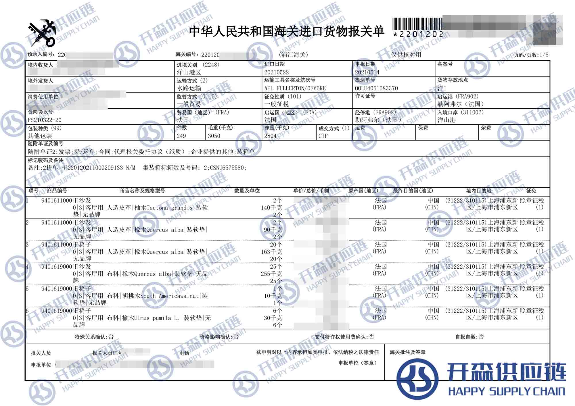 【導讀】您正在閱讀的是關于法國舊沙發家具進口報關代理服務【清關案例】的內容,本文由開森二手家具進口報關代理小編整理編寫;