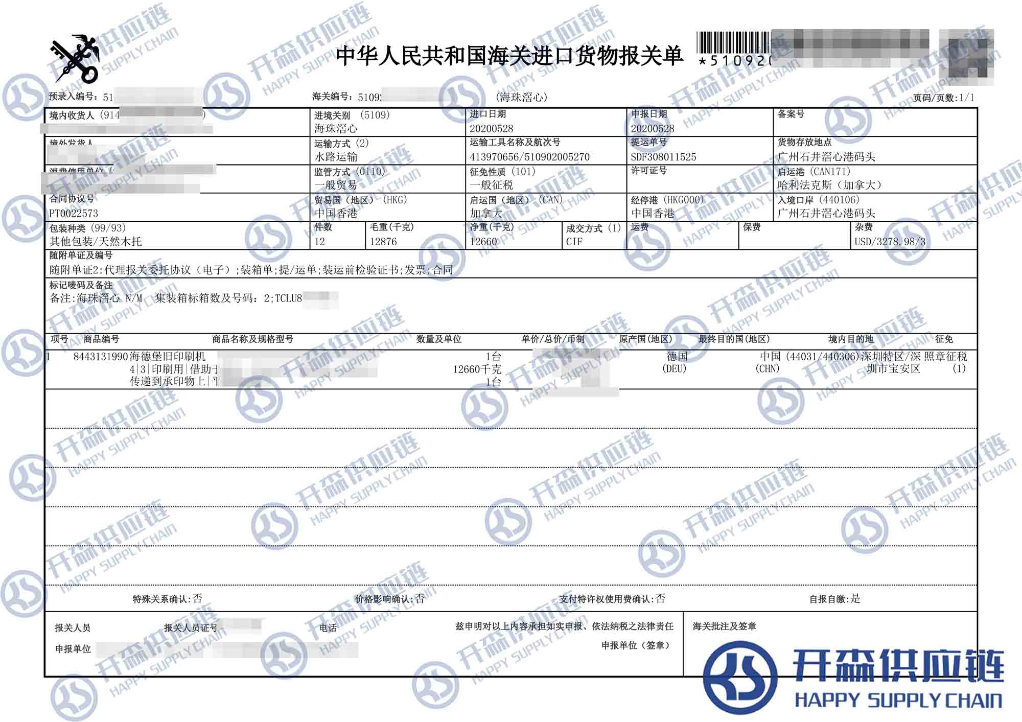【本文結(jié)語】 上述就是廣州港二手海德堡印刷機進(jìn)口報關(guān)代理服務(wù)【進(jìn)口案例】的全部內(nèi)容,希望能對您有所幫助,如有二手印刷機進(jìn)口報關(guān)上任何疑問及問題可隨時在線聯(lián)系我們或撥打 18002611553,開森供應(yīng)鏈擁有豐富的二手印刷機進(jìn)口報關(guān)操作經(jīng)驗及案例,10余年進(jìn)口經(jīng)驗為您所用,各類進(jìn)口疑難都能為您一一解答及協(xié)助快速處理解決!
