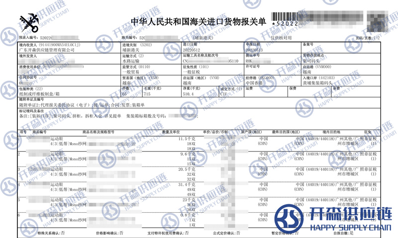 開森進口供應鏈擁有豐富的運動鞋進口報關操作經驗及案例,十余年操作經驗及案例可供參考,可按需定制運動鞋進口方案,幫助客戶解決進口難題,快速進口清關到港到貨。