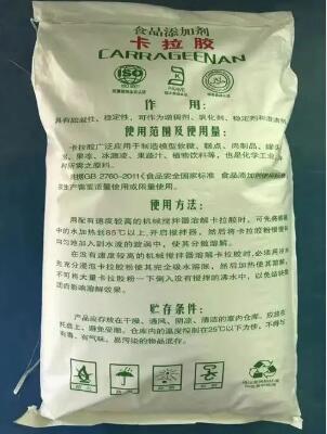 卡拉膠是一種親水性膠體,又稱為麒麟菜膠、石花菜膠、鹿角菜膠、角叉菜膠,因為卡拉膠是從麒麟菜、石花菜、鹿角菜等紅藻類海草中提煉出來的親水性膠體,它的化學結構是由半乳糖及脫水半乳糖所組成的多糖類硫酸酯的鈣、鉀、鈉、銨鹽。作為食品添加劑廣泛用于制造果凍、冰淇淋、糕點、軟糖、罐頭、肉制品、八寶粥、銀耳燕窩、羹類食品、涼拌食品等等。