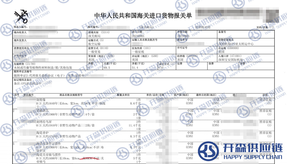 開森進口供應鏈擁有古董藝術品進口報關操作經驗及案例,十余年操作經驗及案例可供參考,可按需定制古董藝術品進口方案,幫助客戶解決進口難題,快速進口清關到港到貨。
